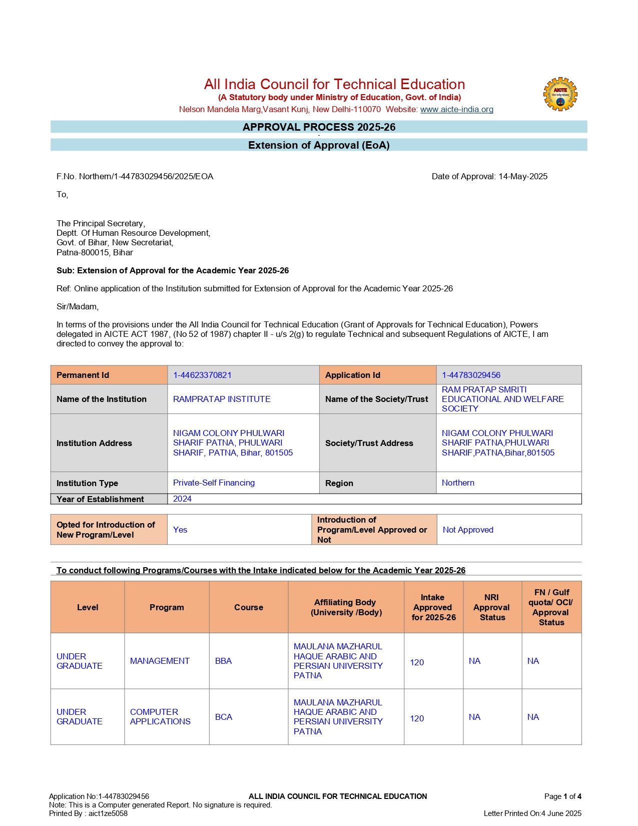 EXTENTION OF APPROVAL 2025-26